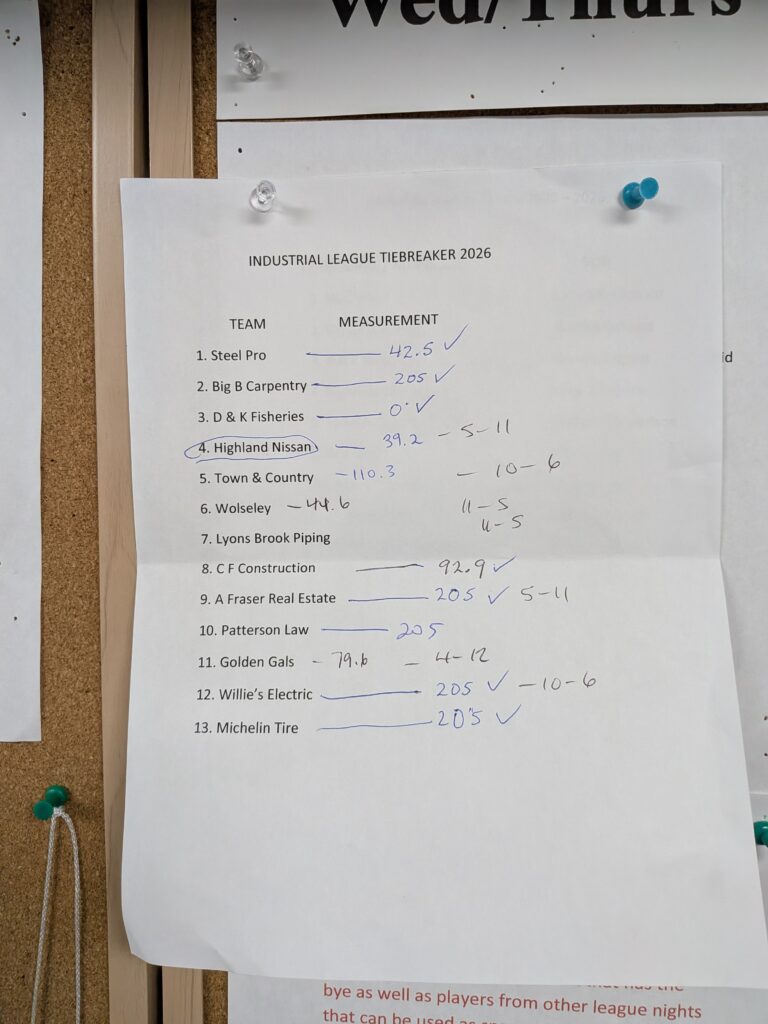 2026 industrial league tiebreakers